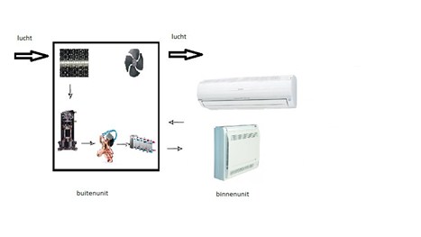 - Het koelgas onttrekt energie aan de buitenlucht en warmt op.