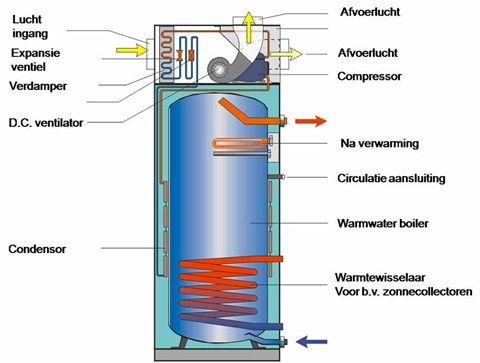Een warmtepompboiler werkt zoals een lucht-water warmtepomp: